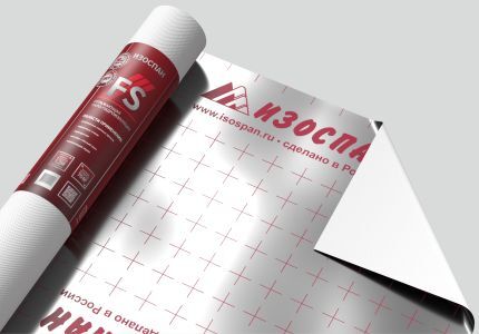 Изоспан FS — материал, выполненный из полипропиленового нетканого полотна и металлизированной полипропиленовой пленки. Свойства материала Изоспан FS позволяют применять его в качестве: пароизоляции с эффектом энергосбережения в конструкциях утепленных скатных кровель, каркасных стен и перекрытий для защиты утеплителя и внутренних элементов конструкций от проникновения паров воды изнутри помещения, а также для предотвращения проникновения частиц волокнистого утеплителя во внутреннее пространство здания; подложки в системе «Теплый пол» с целью направленного отражения тепла внутрь помещения; экрана, отражающего тепловой поток от нагревательной системы. При соблюдении всех требований к монтажу применение отражающей паро-гидроизоляции Изоспан FS позволяет сохранить теплоизоляционные свойства утеплителя и продлить срок службы конструкций, а также снизить теплопотери помещения, давая возможность сэкономить на его отоплении до 10% (по результатам натурных испытаний) за счет способности металлизированной поверхности отражать тепловое излучение. Для обеспечения герметичности пароизоляционного слоя нахлесты и примыкания пароизоляции необходимо проклеивать соединительными лентами.