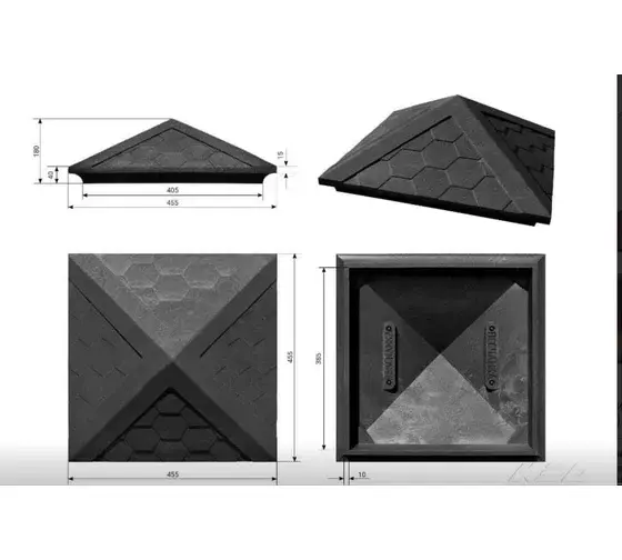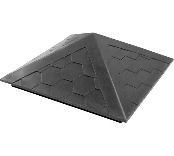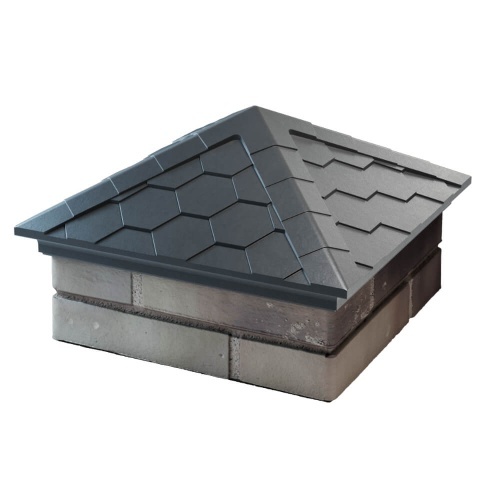Простая и лаконичная форма, декоративное оформление в виде имитации черепицы, наличие капельника и возможность оснащения фонарем и пикой – все это колпак EVEREST Серый Графит с посадкой на 1.5 кирпича. Состав изделия – песчано-полимерный композит. Это простой и экологически чистый материал, в состав которого входит сухой песок, полимеры, красяще элементы и технологические добавки. Срок эксплуатации изделия составляет более 20 лет. Простой и легкий монтаж без электроинструмента, грязи и пыли.