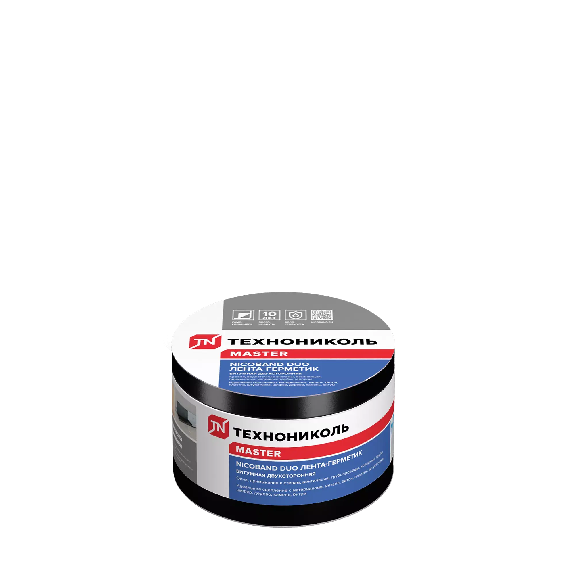 Двухсторонняя самоклеящаяся герметизирующая и гидроизолирующая битумно-полимерная лента. Применяется в качестве временной фиксации теплоизоляционных плит, гидроизоляции и герметизация швов профилированных мембран и кровельных покрытий. Срок службы ленты-герметик более 10 лет.